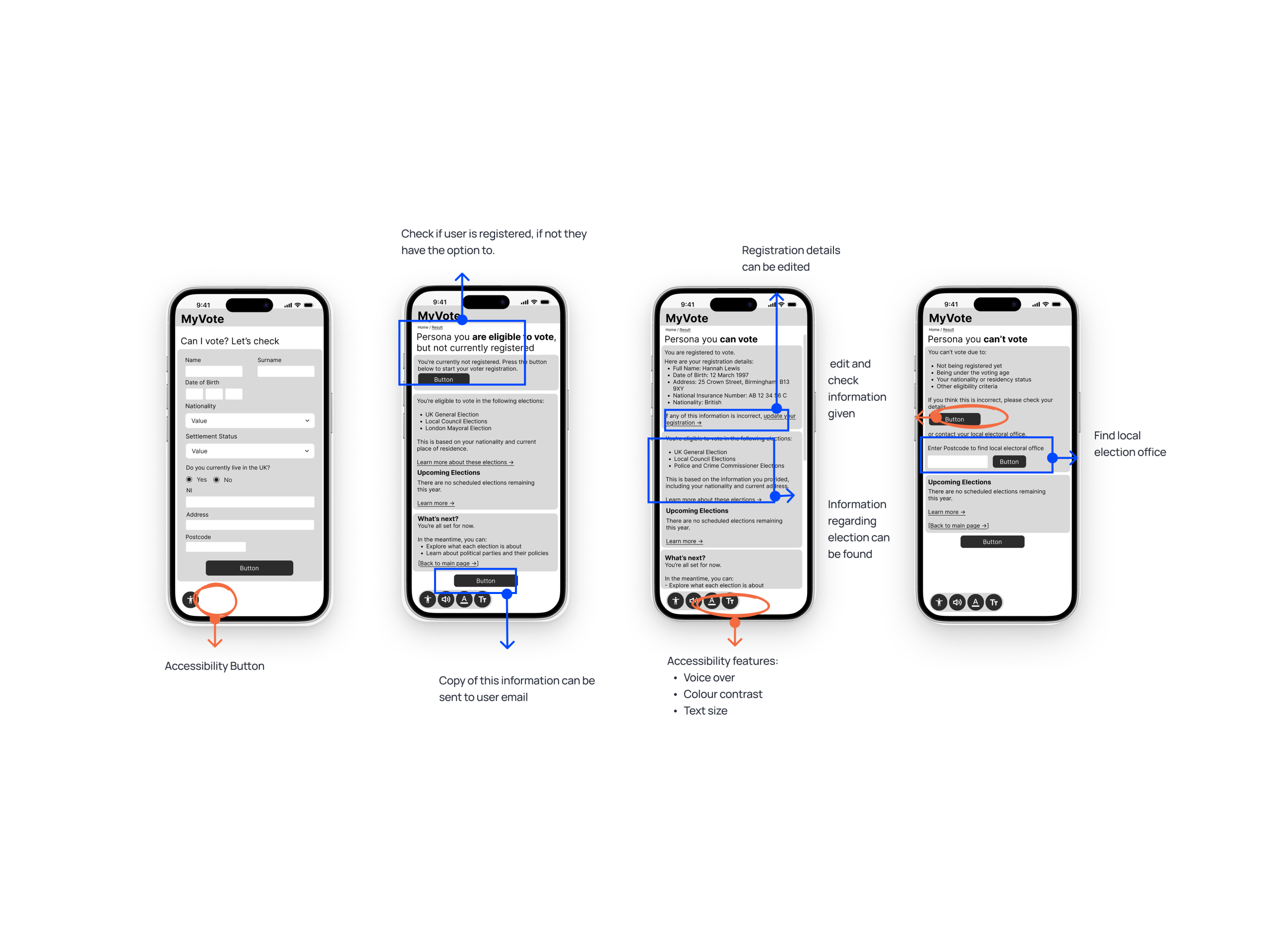 As part of IBM’s Design Assessment, I created MyVote, a personalised and accessible web tool designed to help people prepare for voting with confidence.