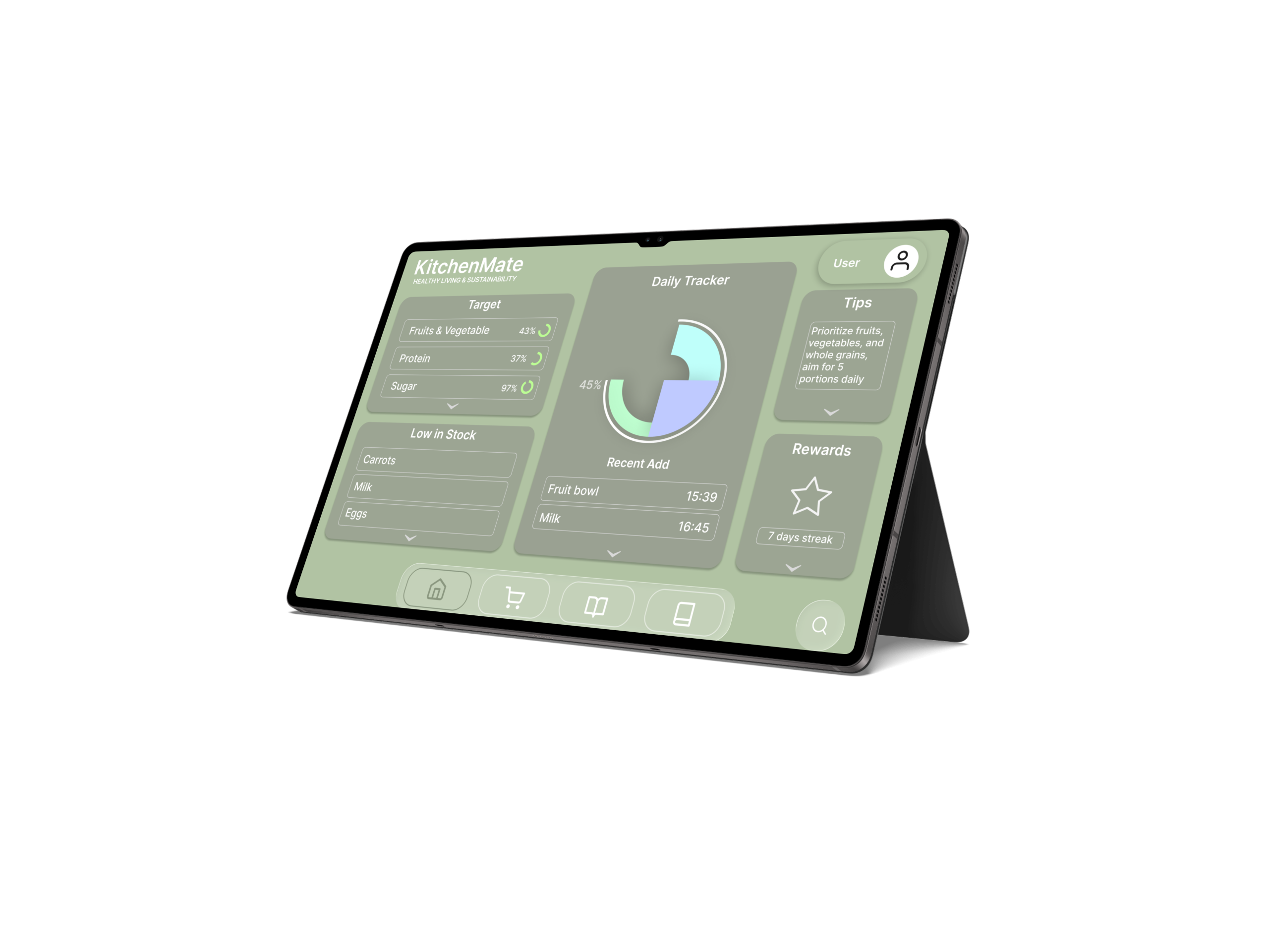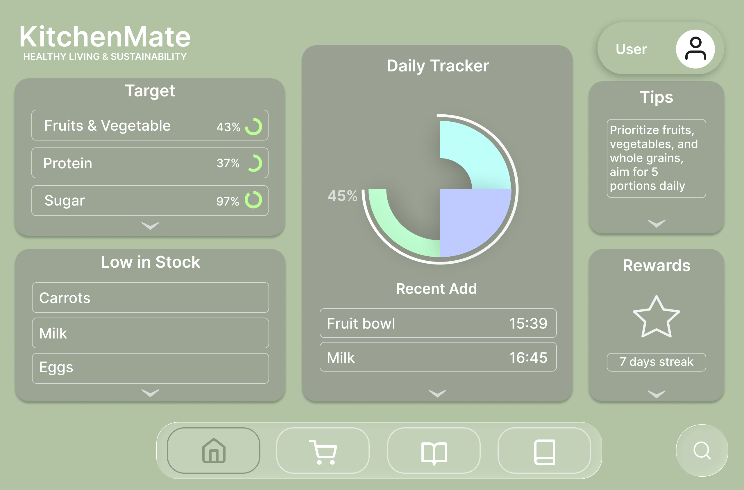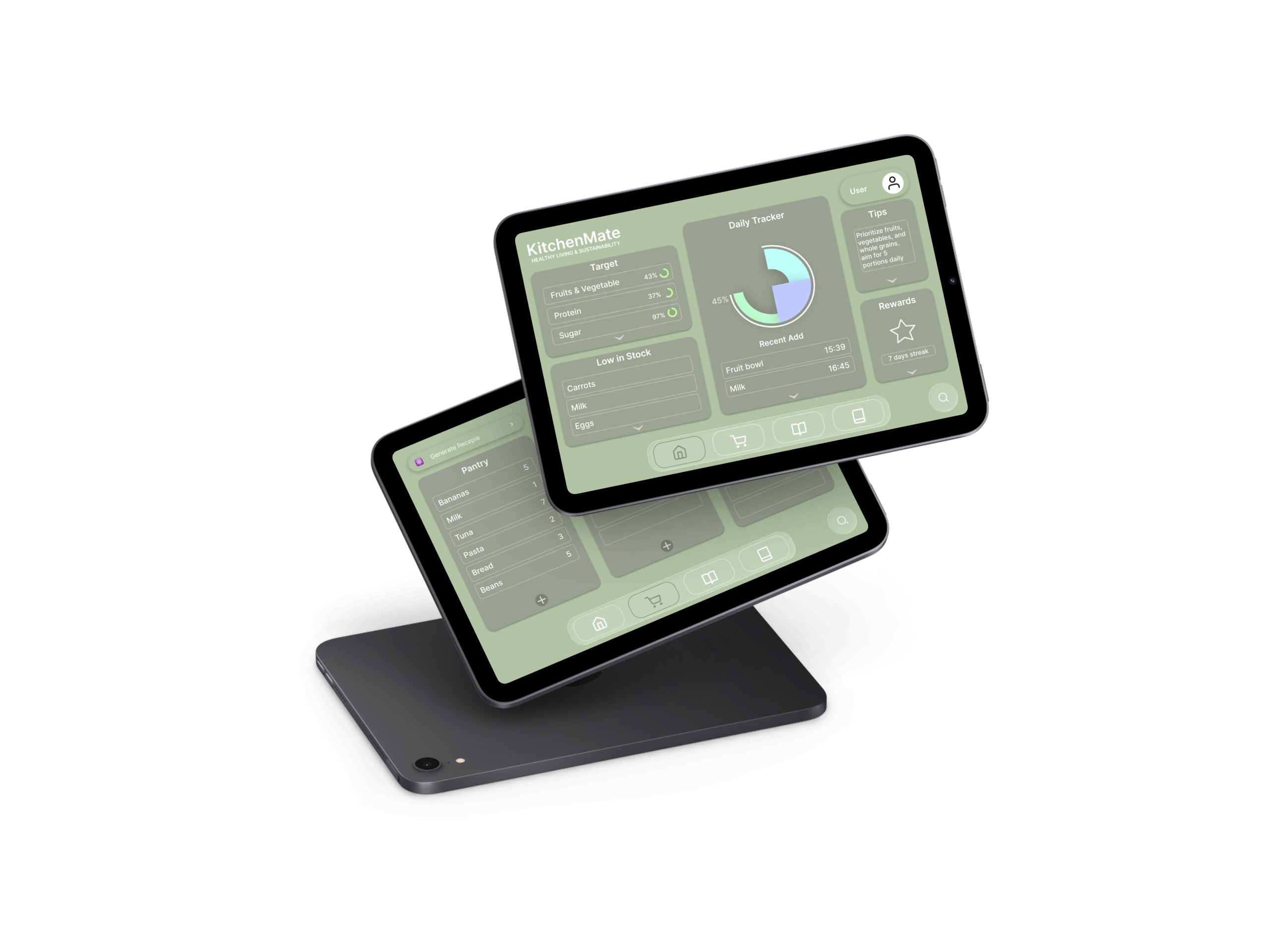 Created profiles tailored to dietary preferences and sustainability goals.Ensured multiple paths to key features, such as recipe suggestions and pantry tracking, to enhance user experience.